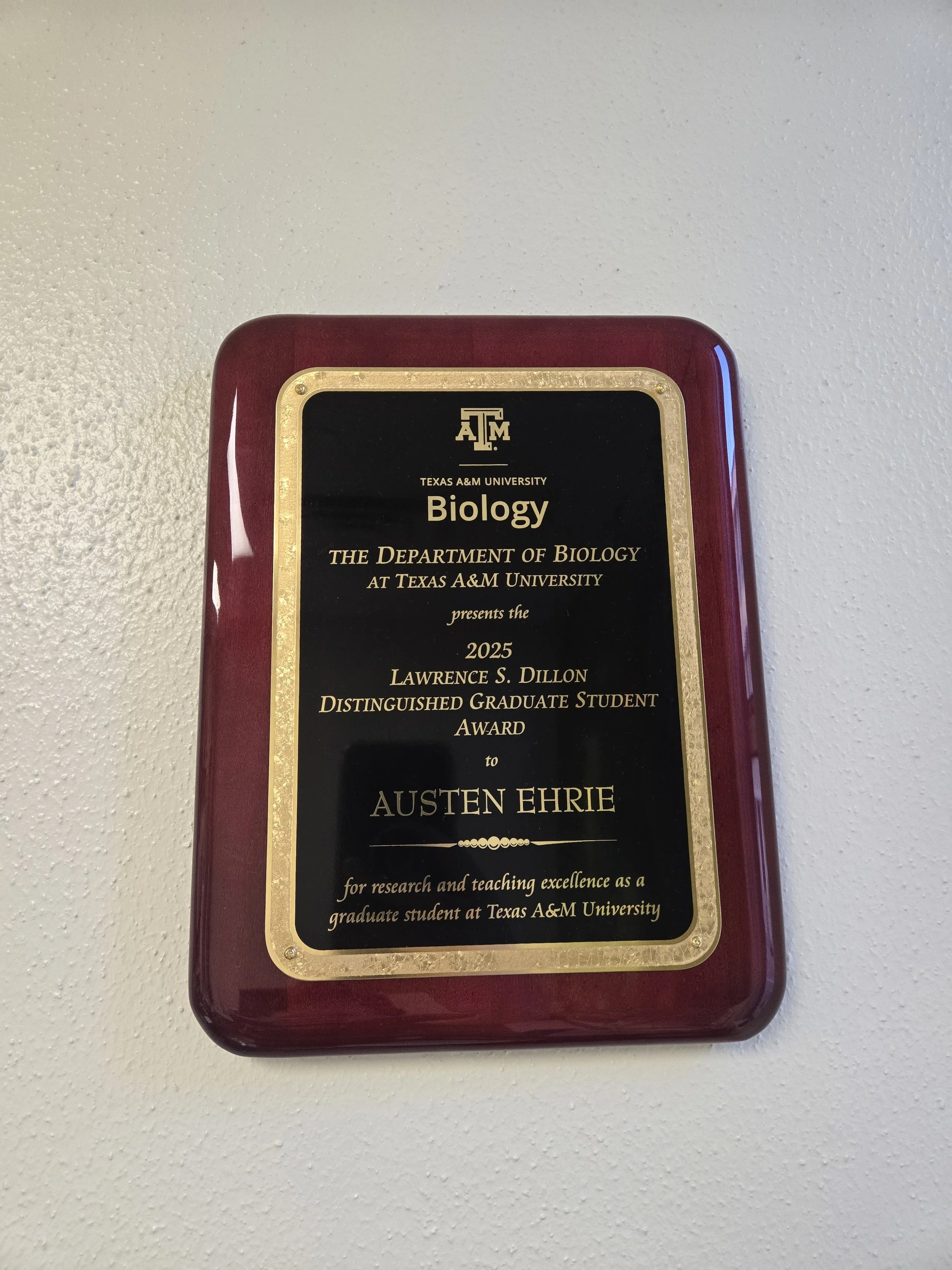 Congratulations to Austen for receiving the Lawrence S. Dillon award from the Biology Department, which recognizes excellence in both teaching and research!